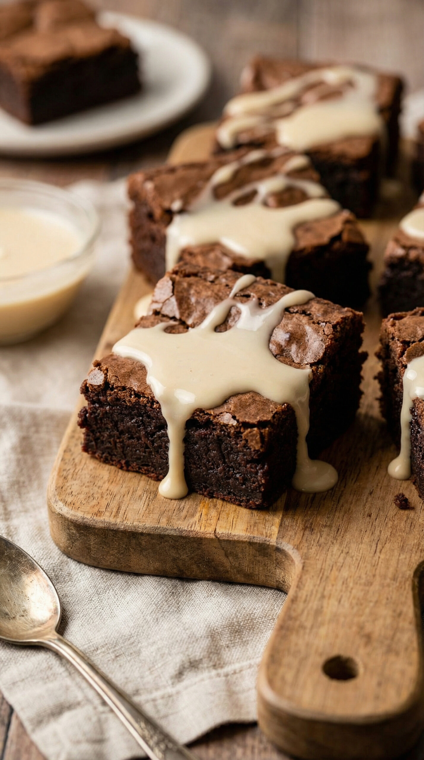 For non-alcoholic brownies, substitute the Bailey’s with 1/4 cup strong brewed coffee plus 1 tablespoon of heavy cream.