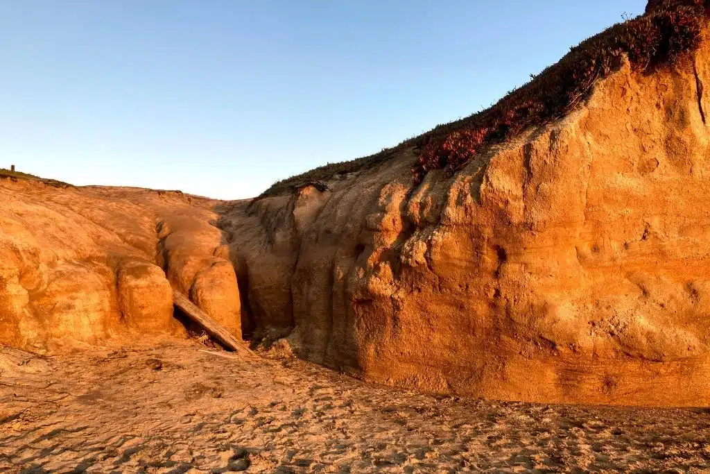 The Shark Fin Cove beach is known for its shark fin-shaped rock in the center of the beach. It’s a steep hike down towards the beach. You can also check out the cave near the cliffs. Make sure to grab a flashlight when exploring the cave and hiking back up past sunset. Near the parking lot, you’ll also find old train tracks that make it a great place to take photos. If you don’t want to hike down, there’s a lot of space to walk around at the top. Shark Fin Cove is just right off of Highway one and you can park on either side of the road.