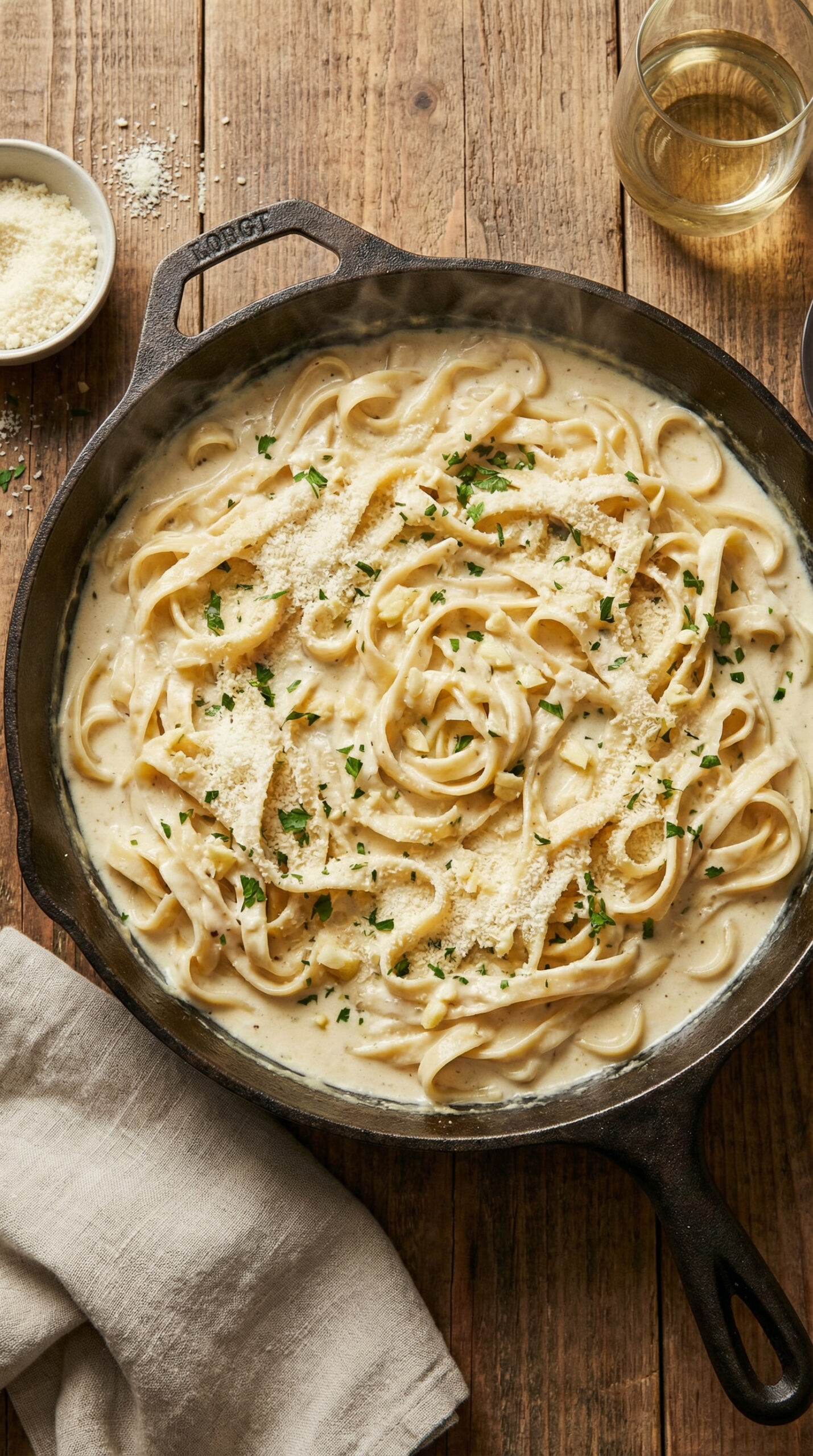 - You only need butter, garlic, cream, and Parmesan—no jarred sauce or shortcuts needed.