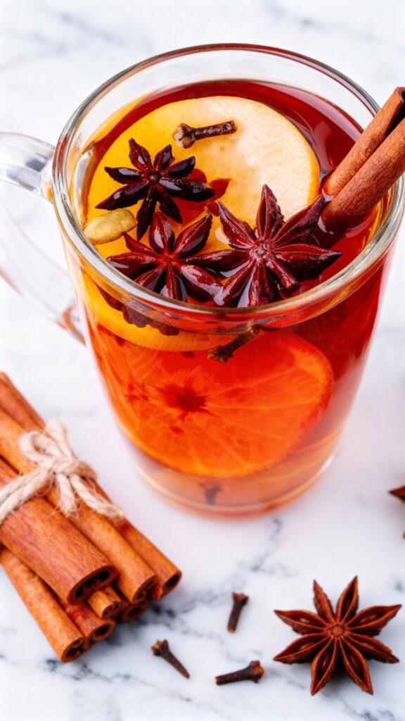 - Keep cinnamon sticks and star anise loose for visual appeal and gentle infusion.