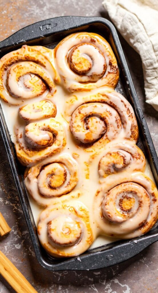 • Mix powdered sugar, vanilla, and milk for glaze. Pour over warm rolls.