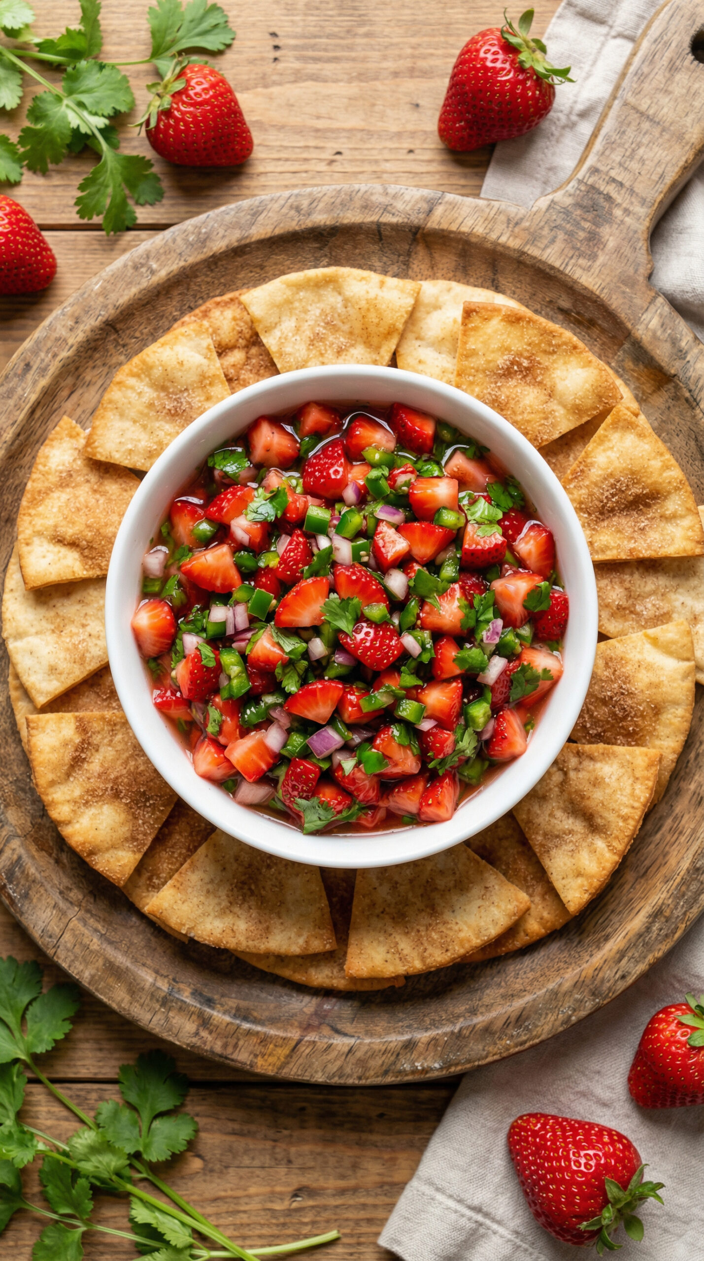 Fresh Strawberry Salsa with Cinnamon Sugar Pita Chips