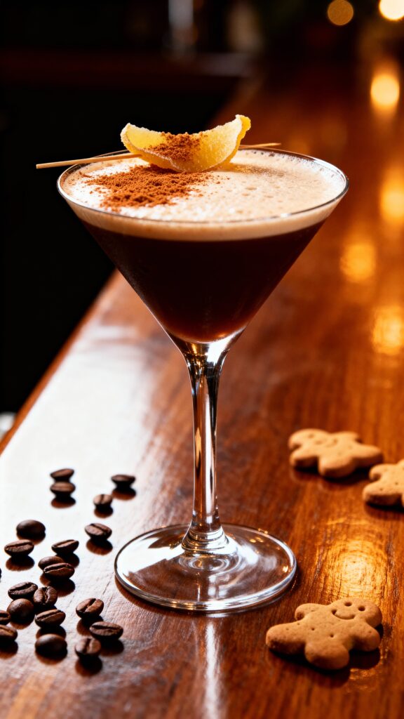 This holiday twist on the classic espresso martini adds warm gingerbread spices to the bold coffee and vodka combination, creating a festive cocktail that’s equal parts dessert and pick-me-up.