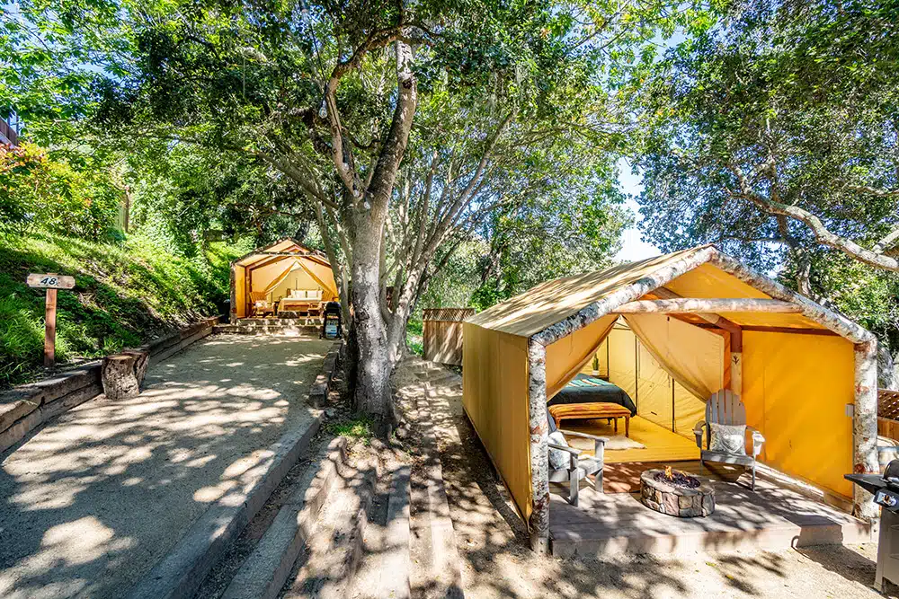 Glen Oaks offers a glamping option for every type of traveler. Located on Highway 1 in Big Sur, this resort has charming cottages and cabins but also an Adobe Motor Lodge from the 1950s with some of the most elegant glamping rooms.