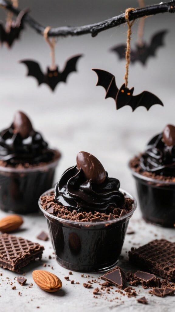 5. Position chocolate-covered almonds on top to look like sleeping bats.