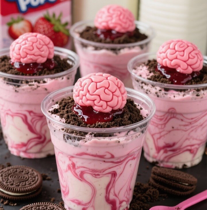 1. Make strawberry pudding and add pink food coloring for brain-like color.