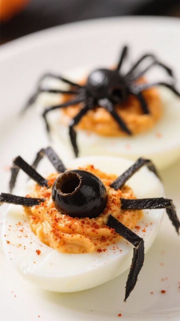 5. Halloween Deviled Eggs (Spider Style)