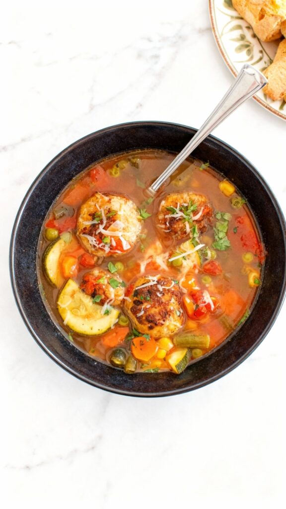 What could be more delightful than a warm bowl of Hearty Chicken Meatball Soup, perfectly complemented by some tasty sides?