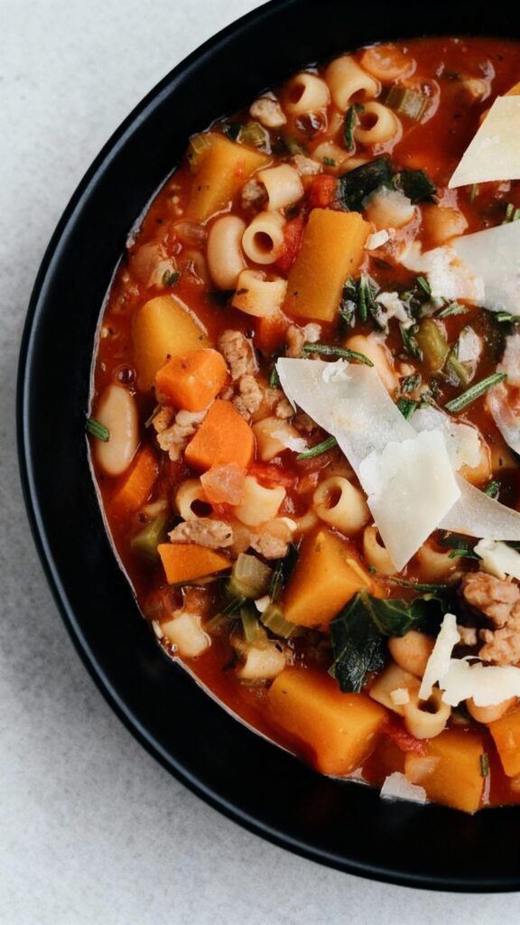 Hearty Fall Minestrone Soup With Italian Sausage and Butternut Squash