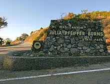 The surrounding park receives its name from Julia Pfeiffer Burns, a famous pioneer and local resident who, together with her husband John B. Burns, ran a successful ranch in McWay Canyon.