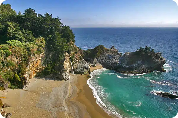 The majestic 80-foot McWay Waterfall, which cascades onto a pristine beach below, is arguably