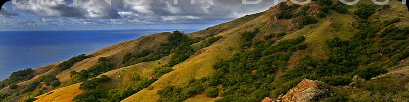 The Ragged Point Fire Road begins on the east side of Highway 1, about 100 yards south of the Ragged Point Inn turnoff. Look for an obvious gate just a few feet off the road nestled under some trees. There is a US Department of Agriculture Forest Service sign next to the gate (see photo at right).