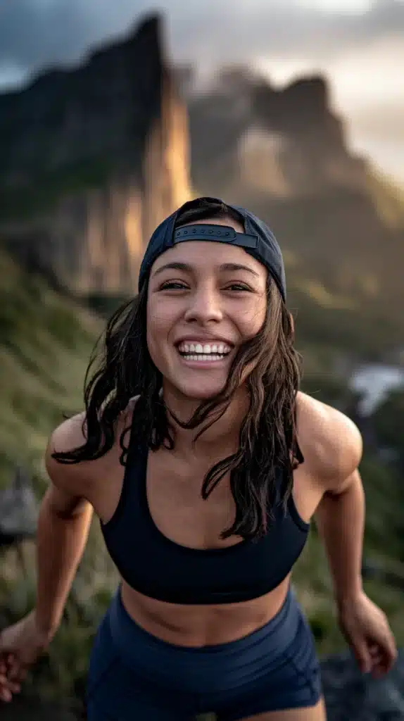 This look says: “Yes, I lift—and I summit.”