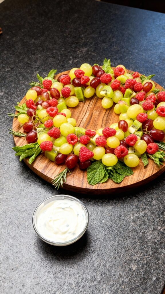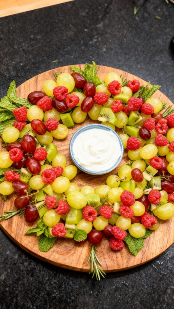 This edible fruit wreath transforms ordinary fresh fruit into a stunning holiday centerpiece that doubles as a healthy appetizer.