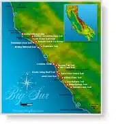 This website features a Big Sur hiking map of the Big Sur coast, with the locations of all hikes described here and major landmarks noted. Each hike also has its own printable trail map.