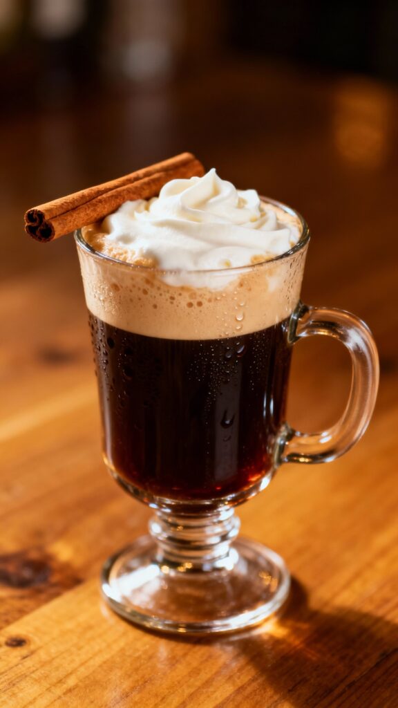 Serve Irish coffee immediately after making — the temperature contrast between the hot coffee and cold cream is the whole point.