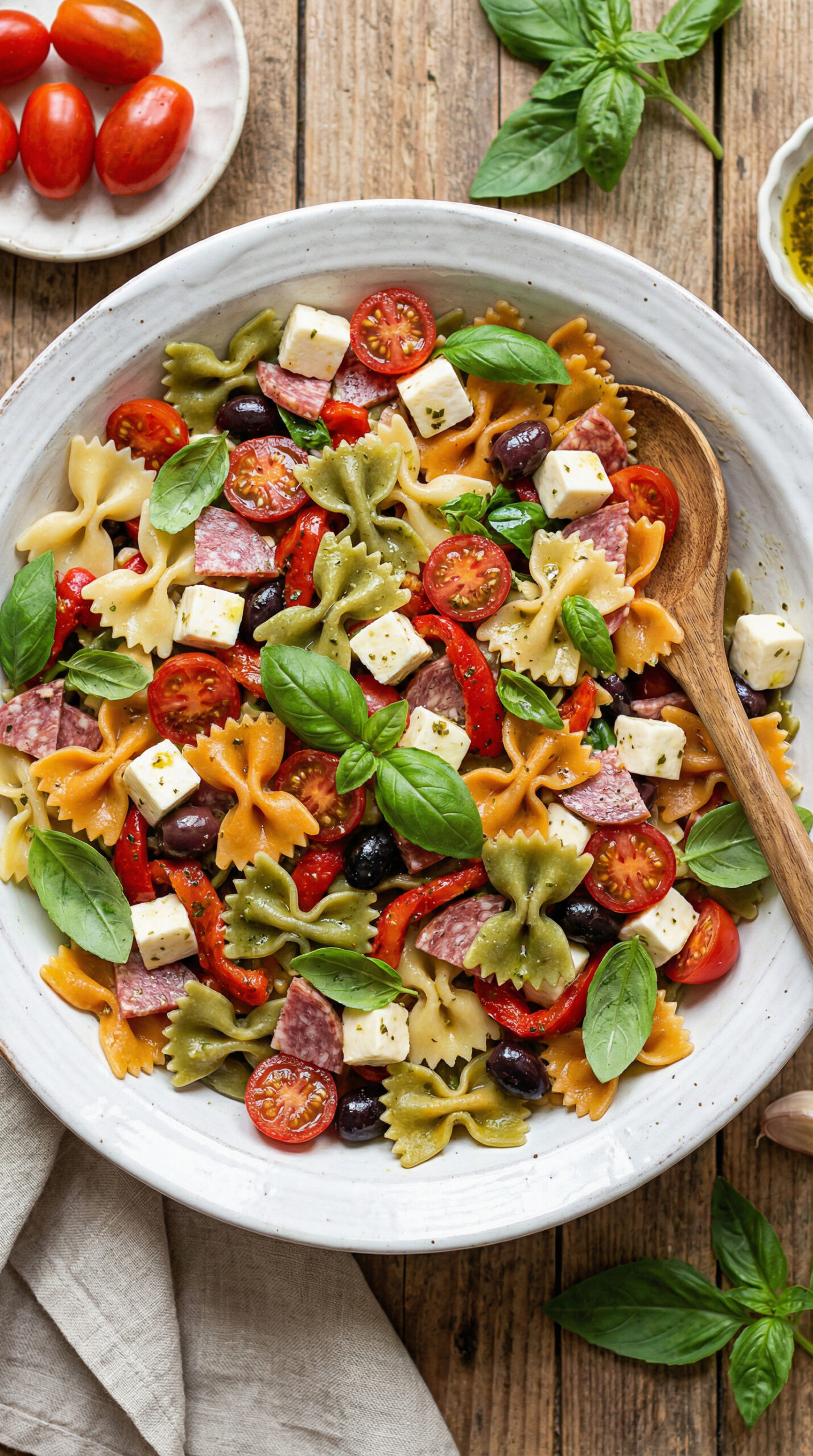 Bowtie pasta salad is a reliable choice for potlucks, summer barbecues, and picnics—the farfalle shape holds dressing beautifully, and the Italian flavors feel refreshing without being heavy.