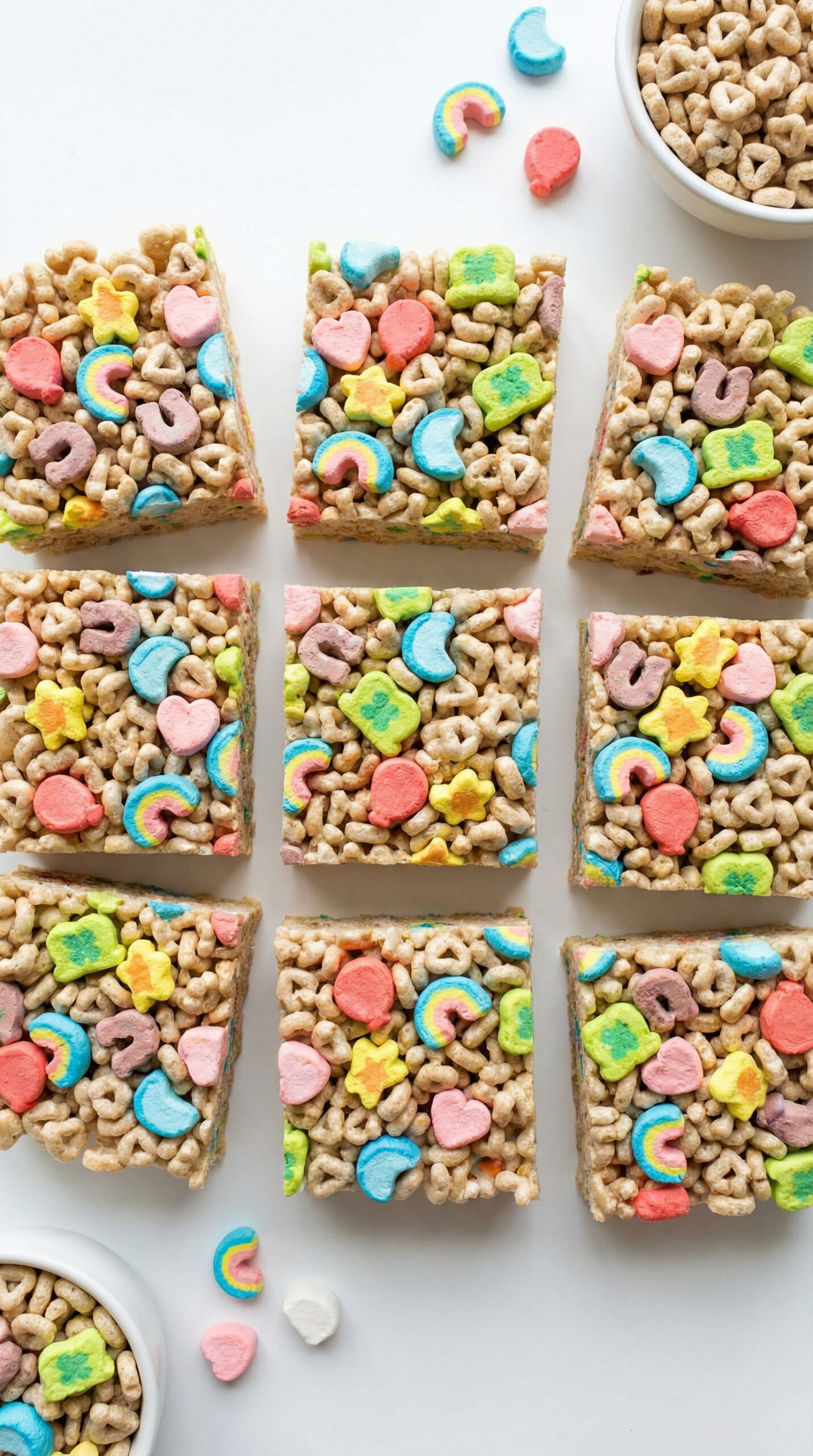 These are classic Rice Krispies treats made with Lucky Charms cereal instead, giving you bursts of fruity marshmallow flavor in every bite.