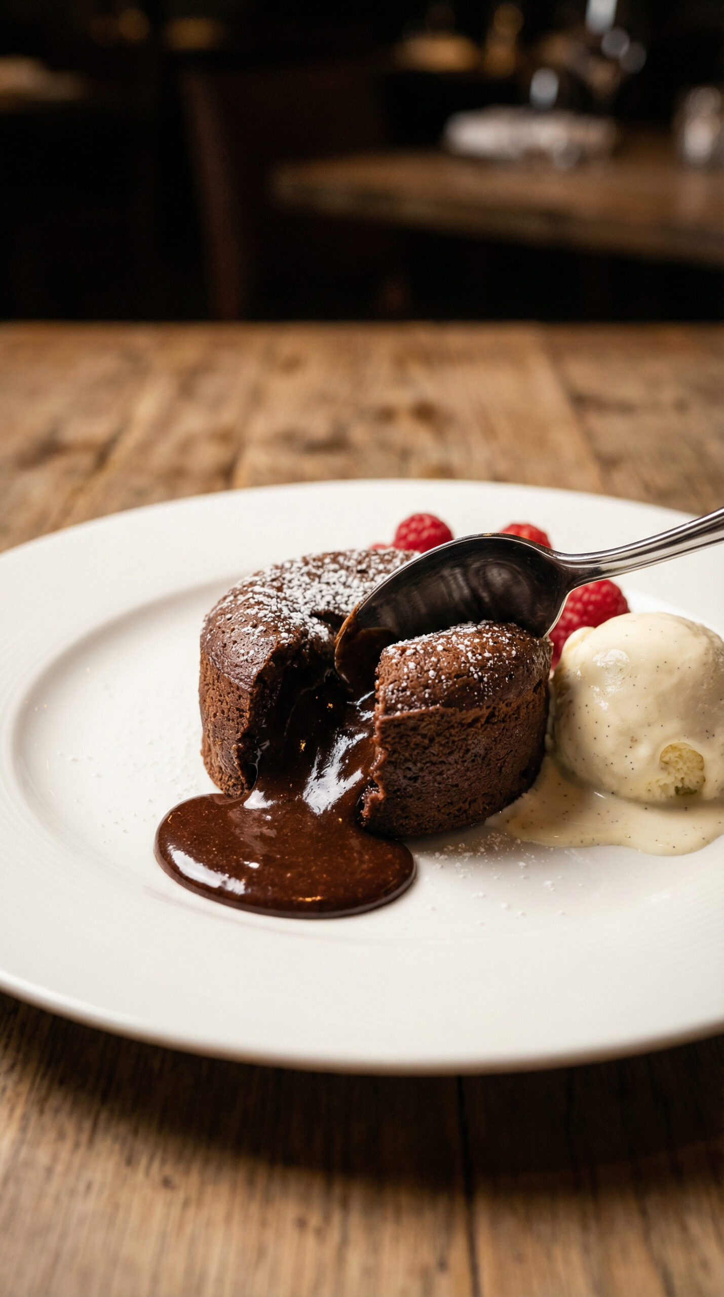 Individual chocolate cakes with warm, gooey centers that flow like lava when you cut into them.