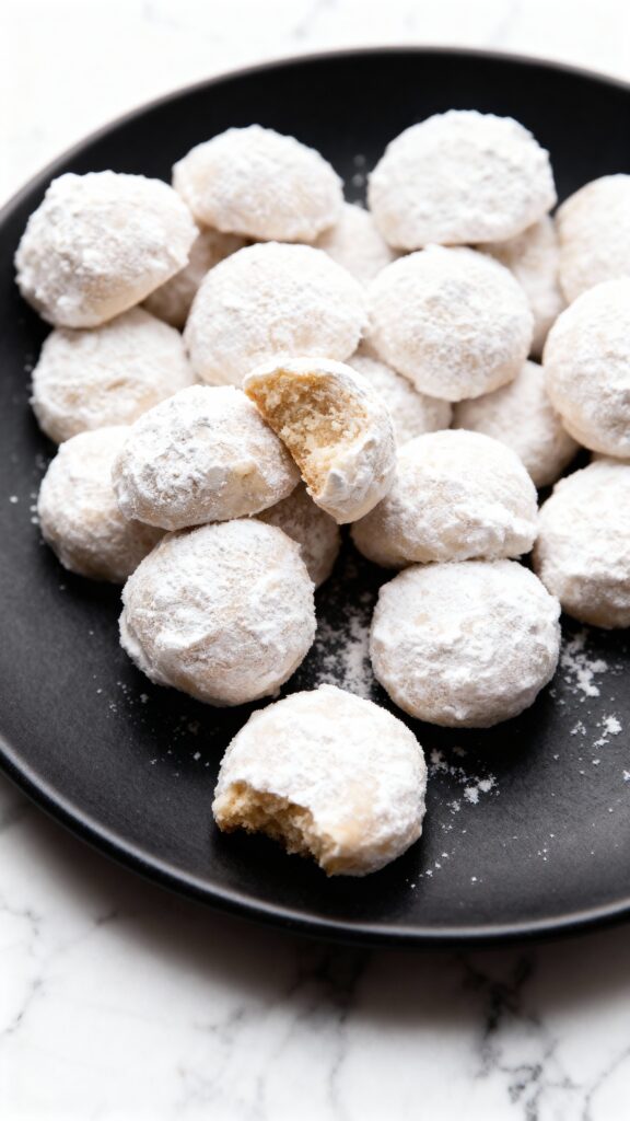 - Once cooled, roll in powdered sugar a second time for a thick, snowy coating.