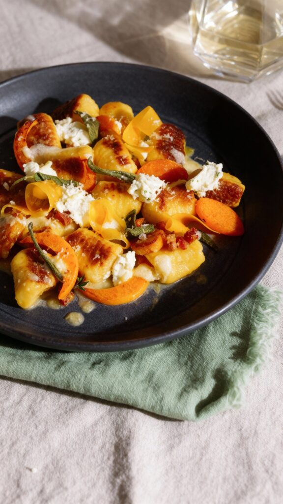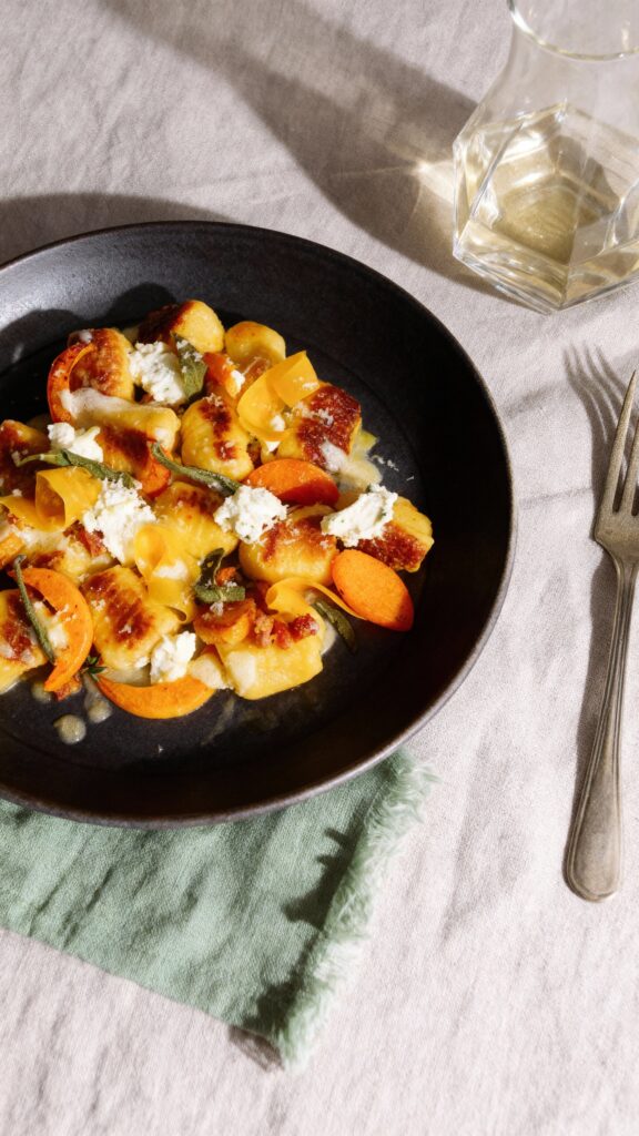 Soft, pillowy potato gnocchi tossed with sweet roasted butternut squash, brown butter, and crispy sage. This version walks you through homemade gnocchi step by step, with options for using store-bought if you want to save time.