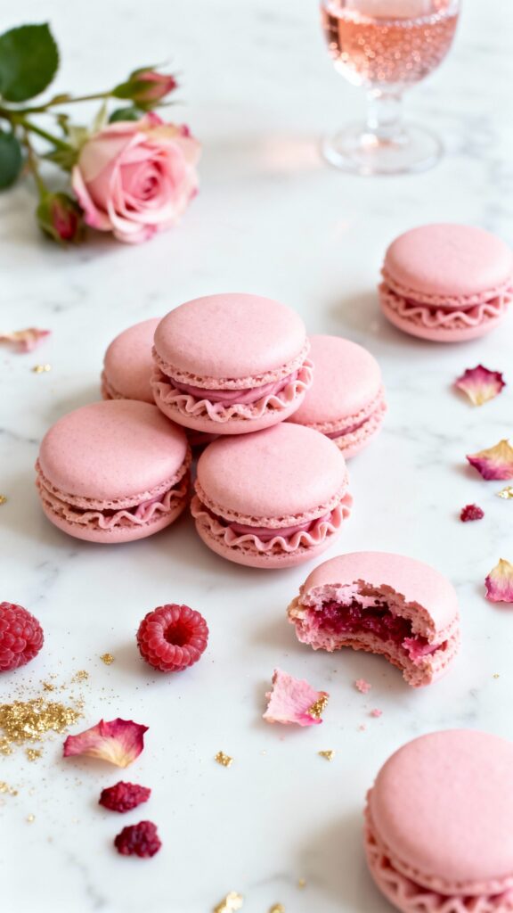 These delicate French macarons combine tangy raspberry with subtle floral rose for an elegant treat that looks as impressive as it tastes.