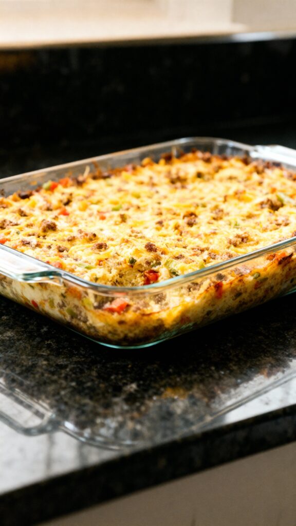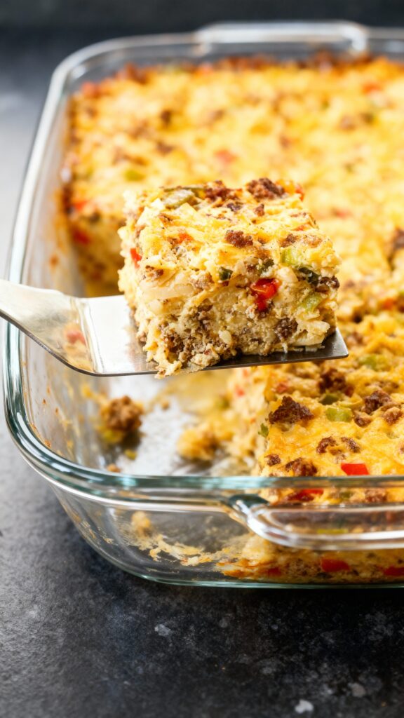 If you like a crispier potato bottom, prebake the hash browns alone for 15–20 minutes before adding sausage, cheese, and egg.