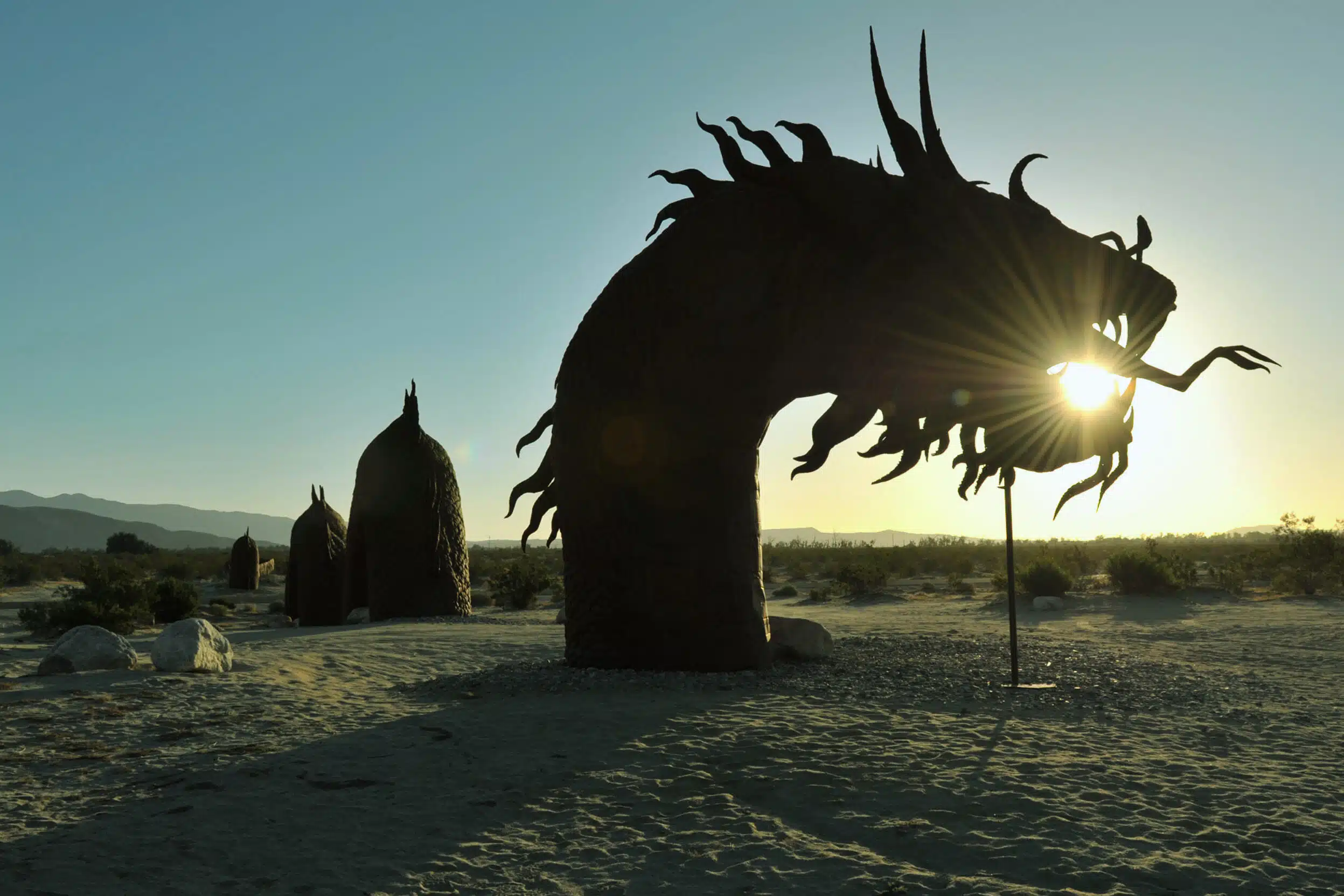 Just outside the sleepy town of Borrego Springs, Galleta Meadows is home to over 130 giant metal sculptures scattered across the desert landscape — and they’re nothing short of jaw-dropping.