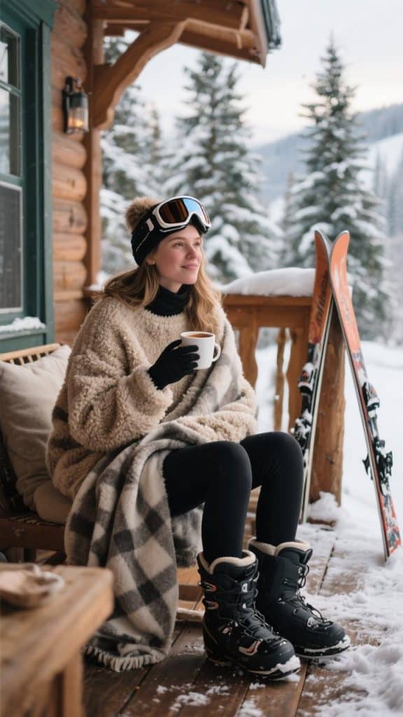 This one’s for the girls who get ready *before* the first lift. A seamless thermal base layer in a matching color set is ideal for under your ski gear—but also looks super cute with a beanie and coffee in hand. Wear it to breakfast, layer it up for the slopes, then lounge in it at night. Add après boots and call it “snow-day chic.”