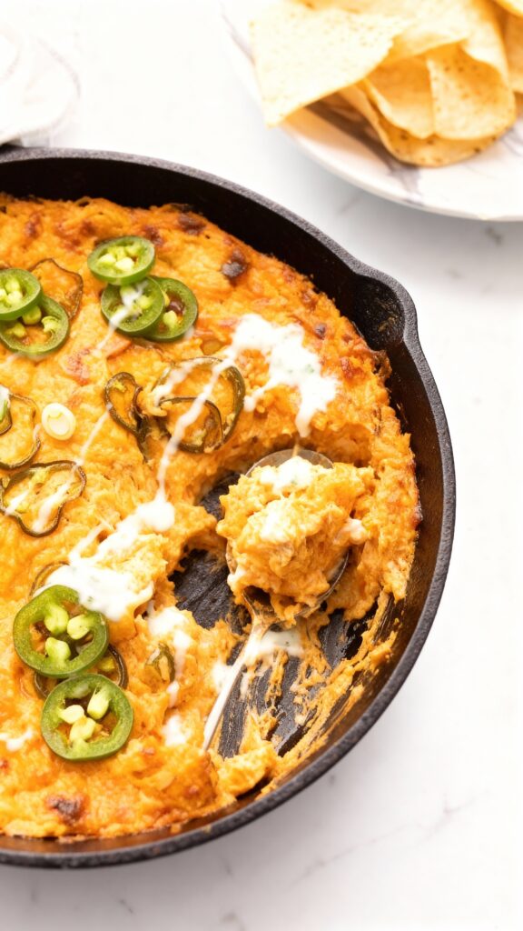 I love serving it piping hot with crispy tortilla chips, celery sticks, and carrot batons. For a fun twist, try it with pretzel crisps or toasted baguette slices.