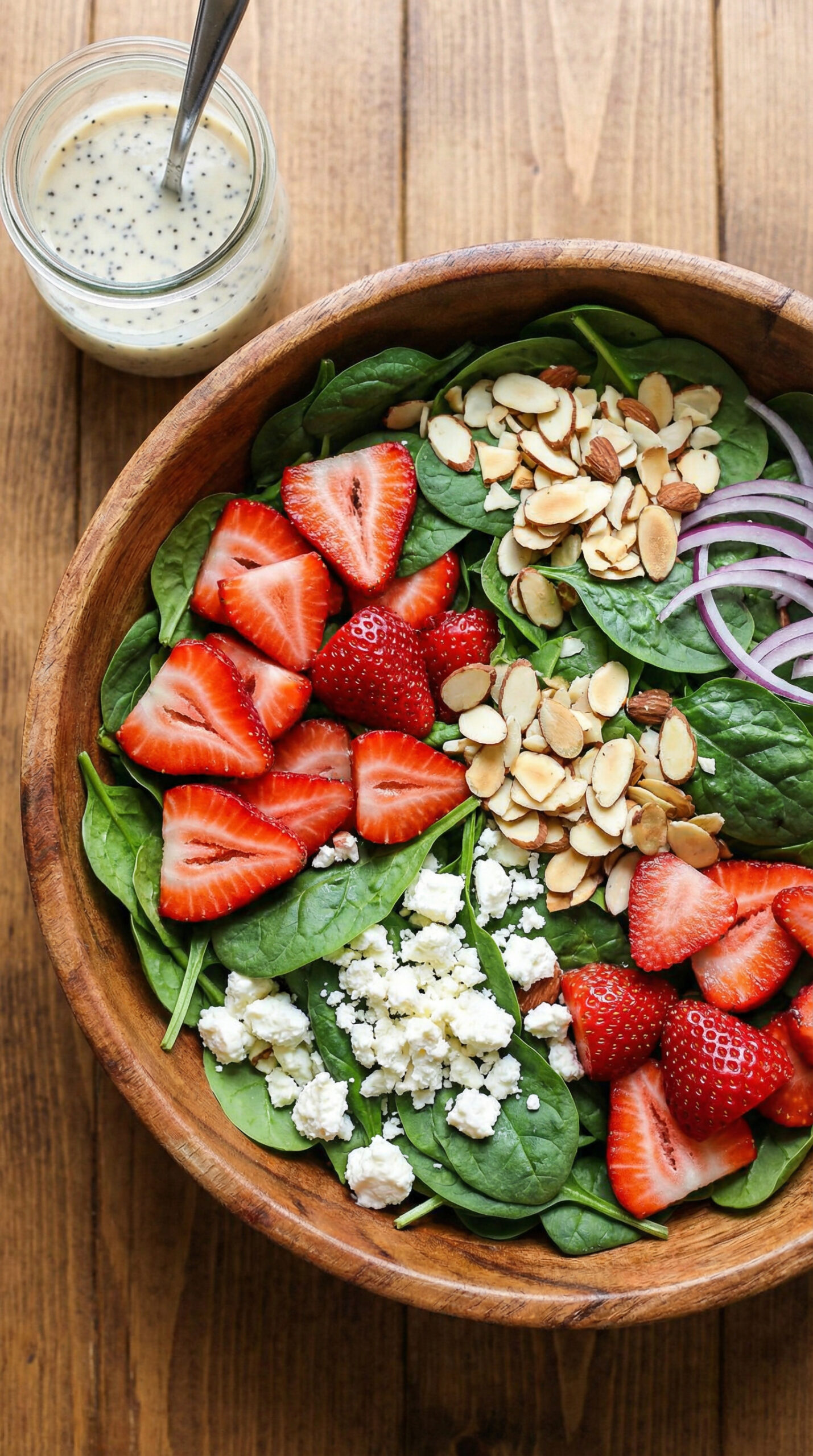 This bright, crisp salad pairs fresh strawberries with tender spinach and a tangy-sweet poppy seed dressing that comes together in minutes.