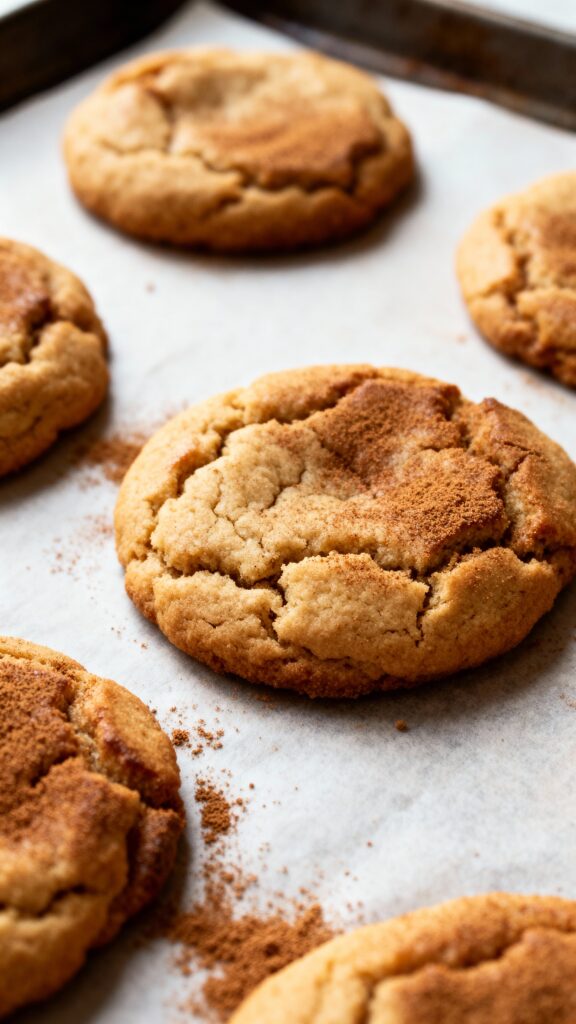 These snickerdoodles are soft and pillowy in the center with slightly crisp edges, coated in a generous layer of cinnamon sugar that creates their signature crackled top.