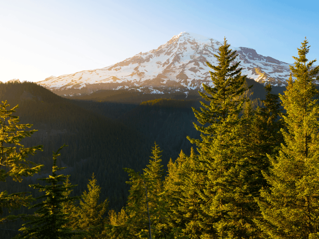 The Paradise area on the mountain’s south side offers wildflower meadows that explode with color every summer, backed by one of the most massive peaks in the contiguous United States.