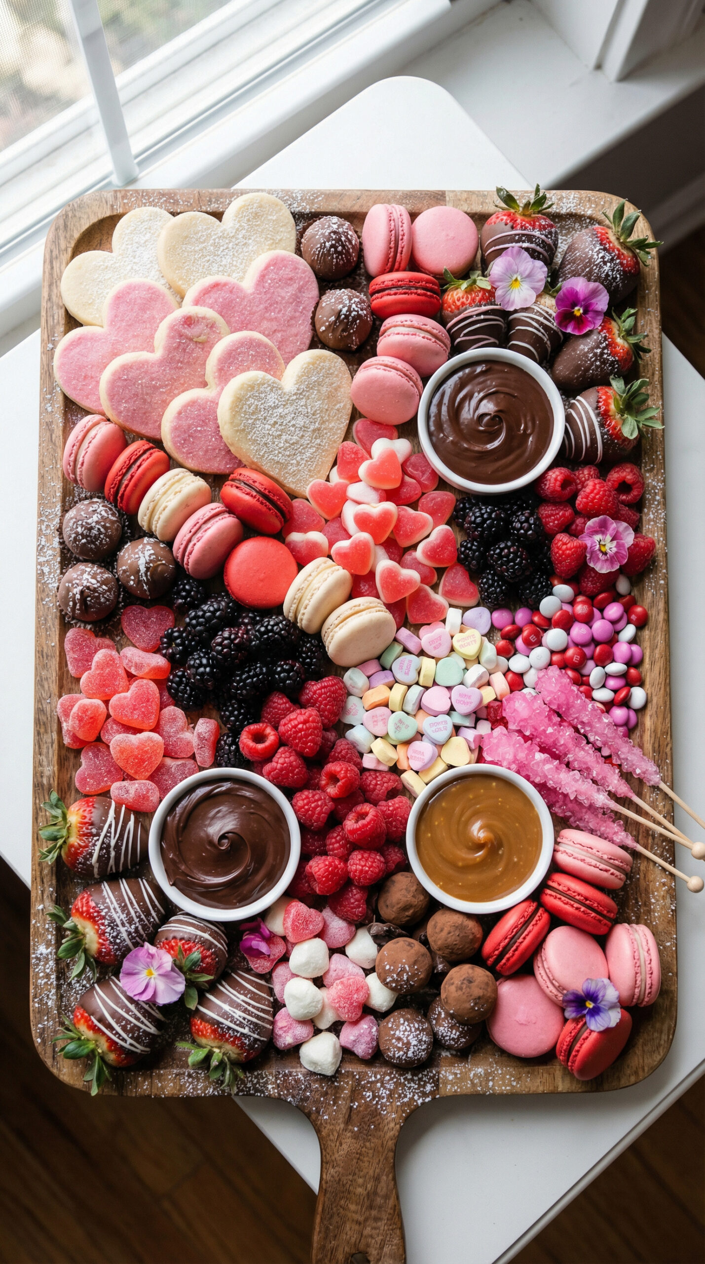 This dessert board combines chocolates, fruits, cookies, and dips in a shareable spread that looks stunning with minimal effort.